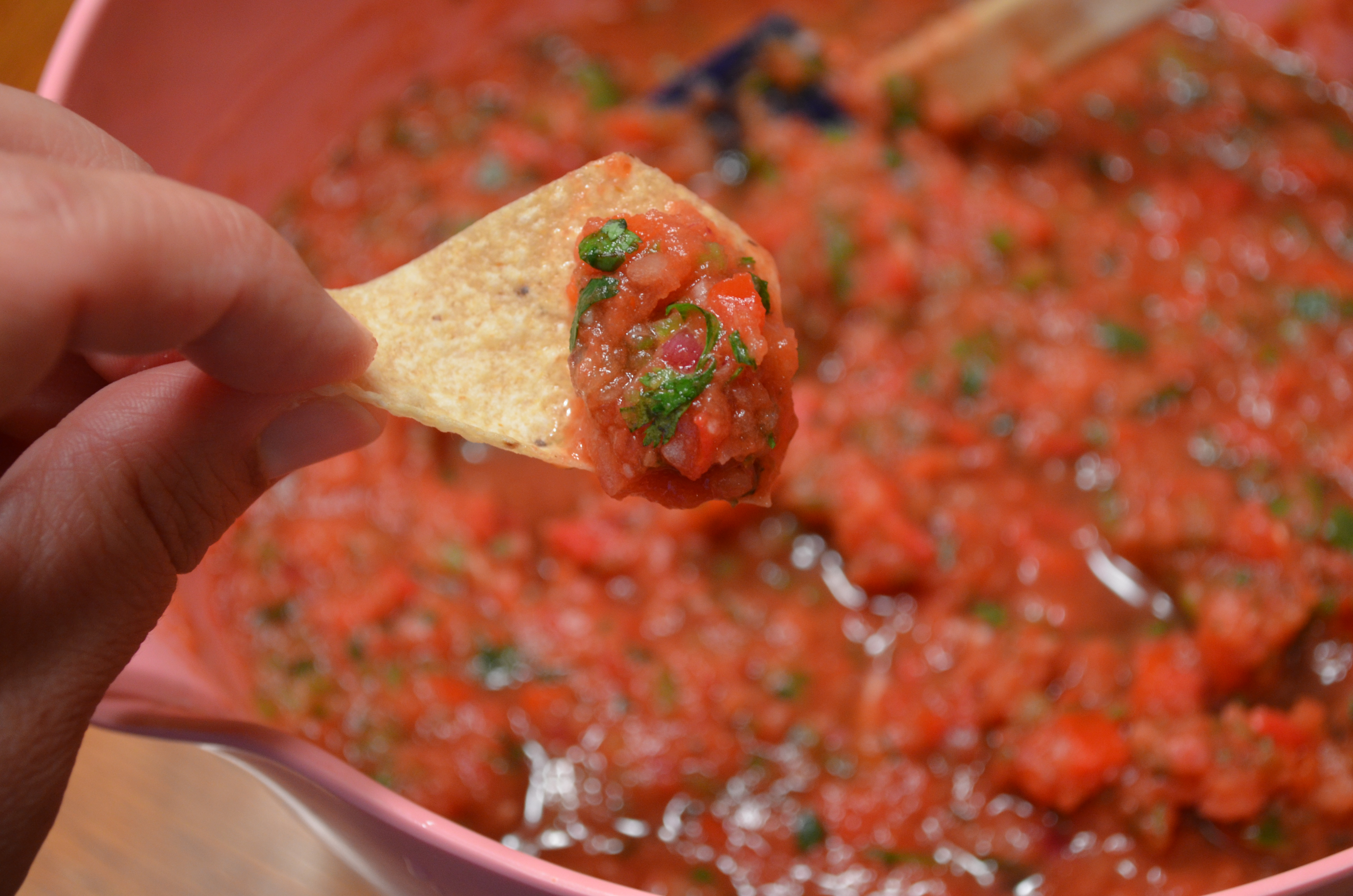 I’m not dancing. No, I’m in the kitchen – okay, I might be chopping in rhythm to some music, but I don’t know how to Salsa. I’ve been making Fabulously Fresh Salsa – and it is TO. DIE. FOR. Fresh veggies from my father in law’s garden sealed the deal on just how yummy it is. And truthfully, I’m not even chopping that much – mostly cutting the veggies into chunks to fit them into the food processor…