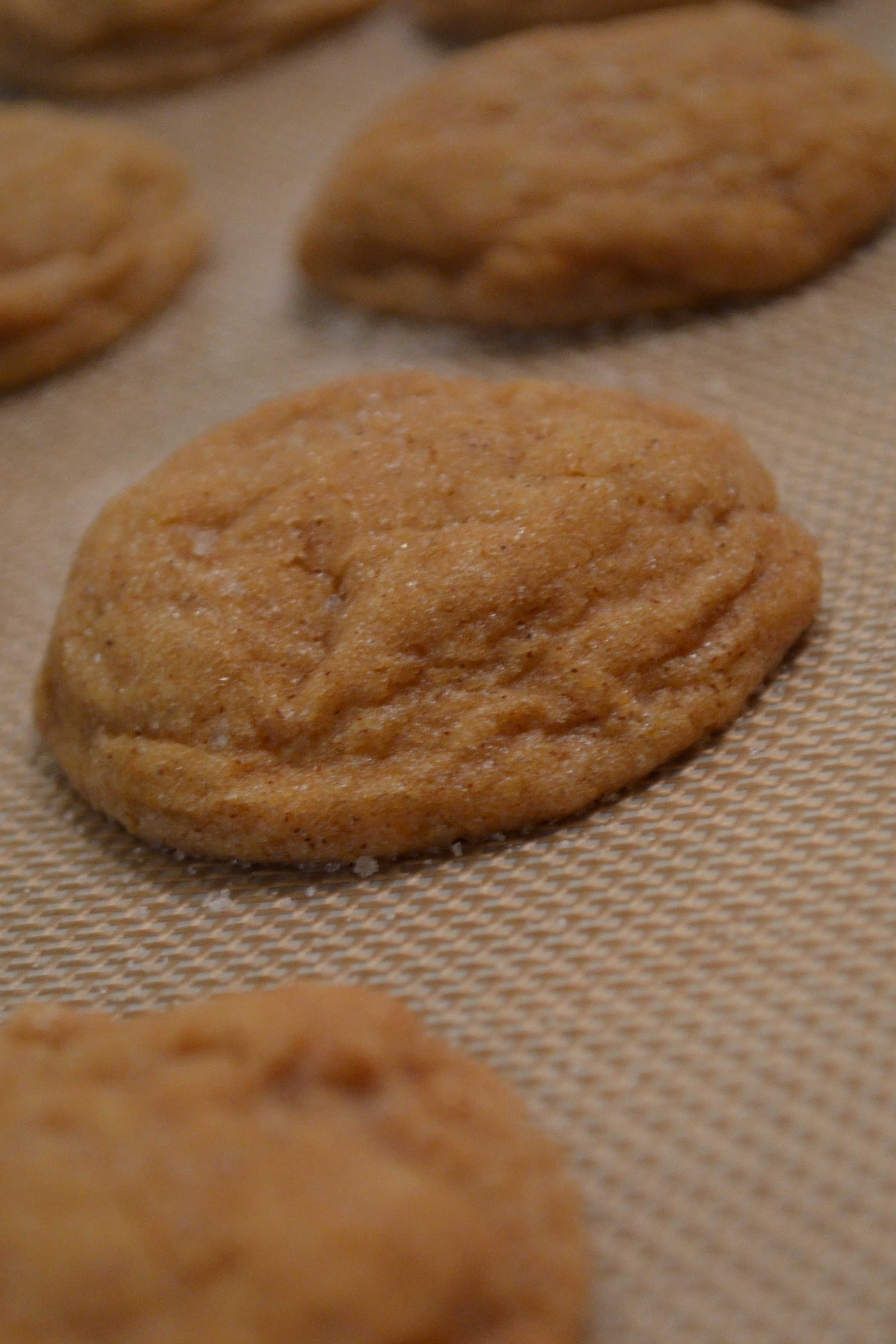 Over the weekend I decided to that two of my favorite flavors from my childhood should be married. I snagged the idea from Pinterest and Bunny’s Warm Oven blog and ran with it! What are those two flavors you ask? (since you obviously missed the title of the blog…) Well, snickerdoodle cookies and my Grandma B’s pumpkin pie – I mixed ’em up in my kitchenaid and this is what came out of the oven: