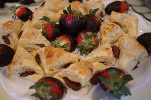 nutella pastries and chocolate dipped strawberries