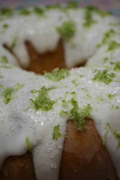 - After glazing the cake I sprinkled with lime zest and white sugar crystals.